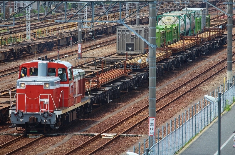 陸橋に上るとすぐにDE10がチキを従えてやってきました。本日の昼発送、八王子
